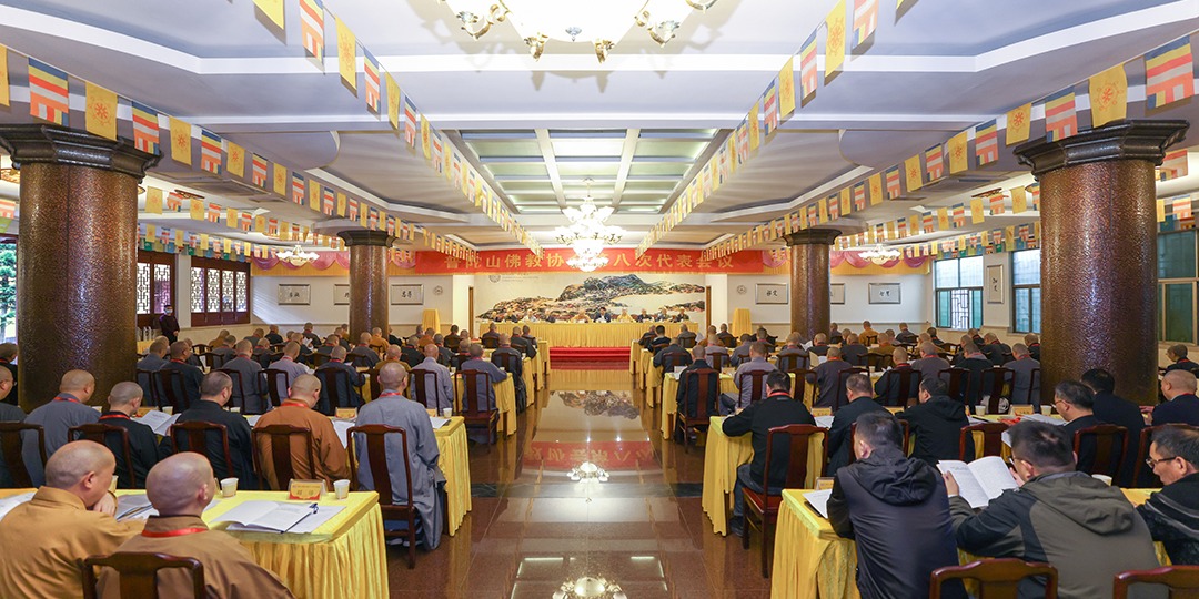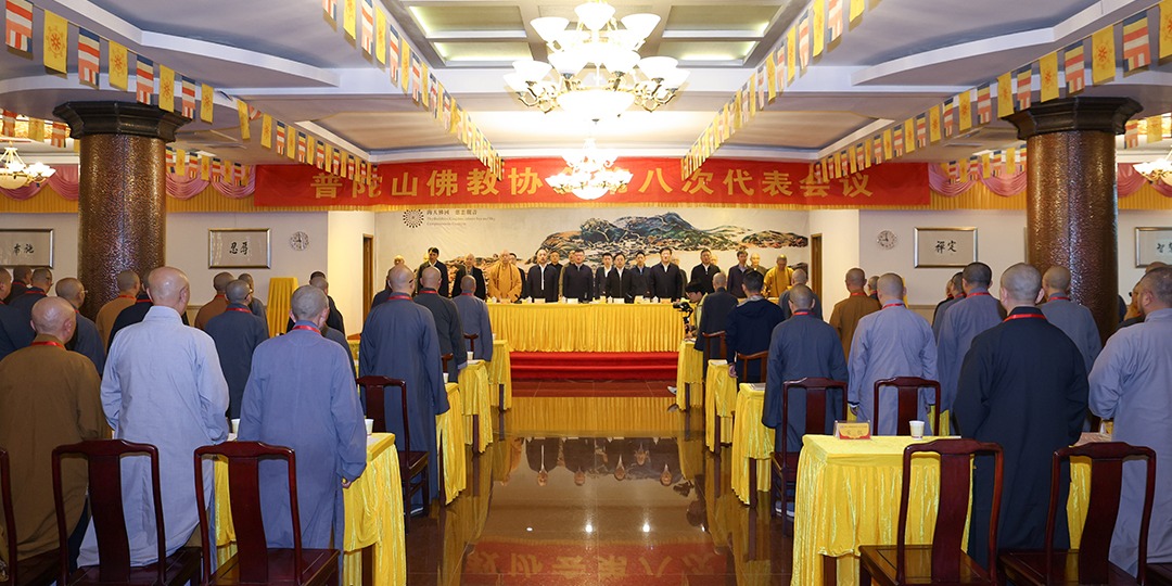 2025年11月4日,普陀山佛教协会第八次代表会议在普济禅寺召开。来自全山各寺院(单位)推选的132名代表和5名特邀代表参加了会议,选举产生了新一届理事会、监事会和领导班子。