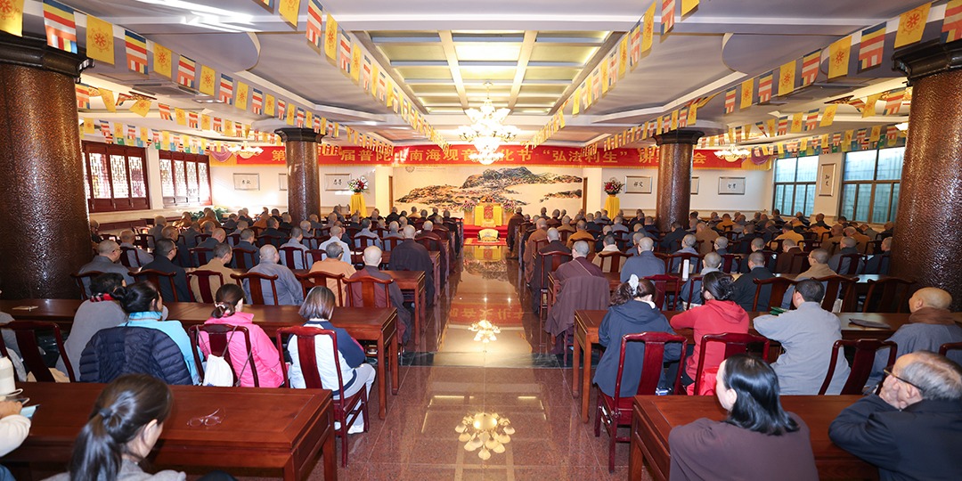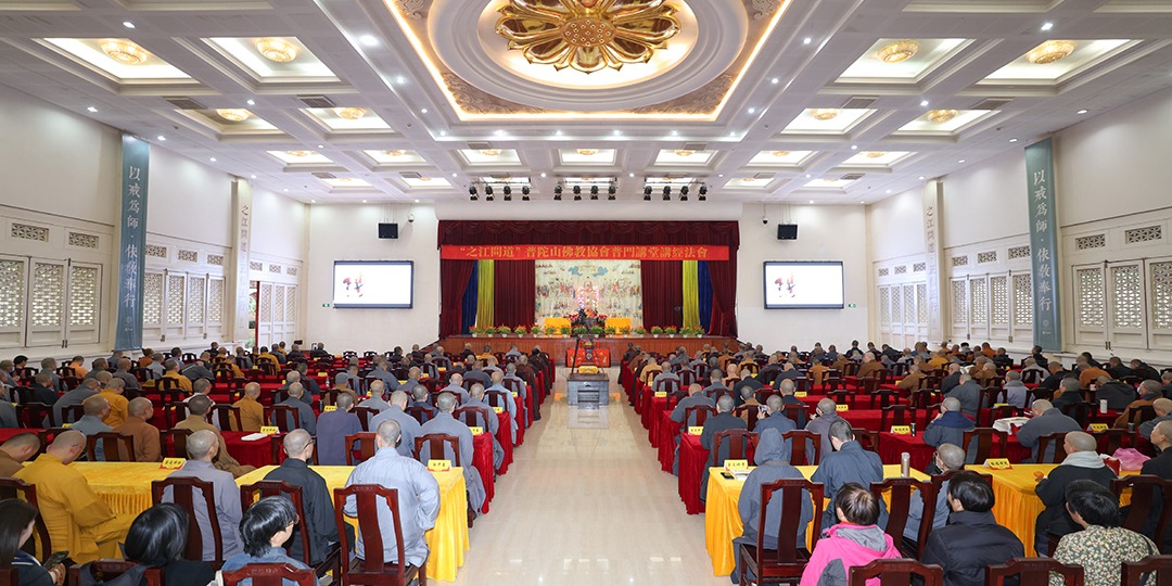 2025年11月20日(乙巳年十月初一)下午,第二十一届普陀山南海观音文化节系列活动之一的“弘法利生”讲经法会在普济禅寺大斋堂举行。
