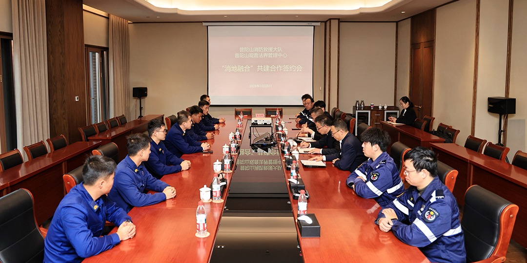 普陀山观音法界与普陀山消防救援大队举行“消地融合”共建签约仪式