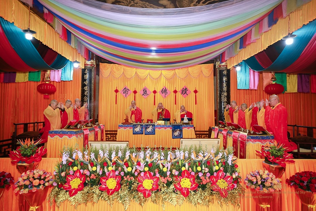 2日上午11时许,新戒登坛毕。最后,上道下慈律师宣受竟下坛法语“以此受具功德,愿戒海澄清,荡众生之业垢。僧田净洁,作大地之津梁。四恩三有,均沾利益。大众同音,念佛回向。”在声声佛号中,众新戒比丘礼谢十师,礼佛三拜。至此,普陀山普济禅寺癸卯年二部僧三坛大戒法会男众部正授比丘戒圆满。