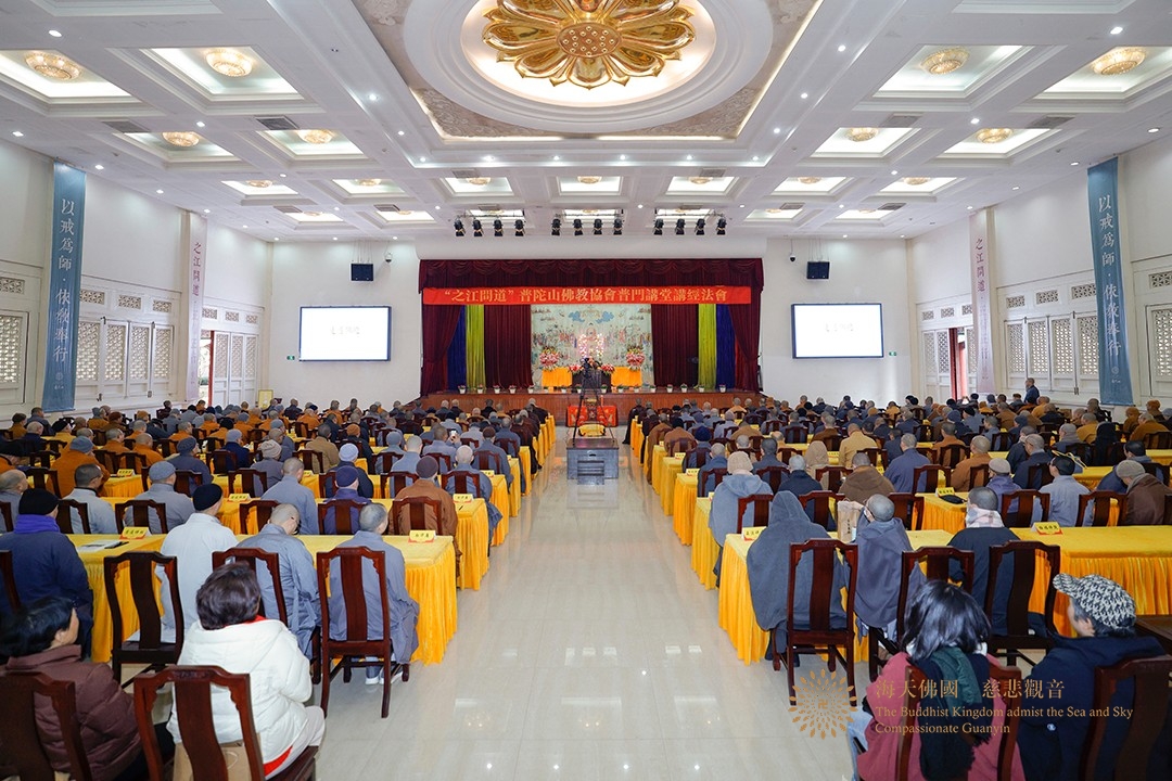 2025年2月16日,“之江问道”普陀山佛教协会普门讲堂讲经法会在普陀山宝陀讲寺举行。普陀山佛教协会弘法办副主任、息耒禅院(学戒堂)负责人、《普陀山佛教》主编宏伟法师讲授《走近佛陀》。普陀山佛教协会副会长兼秘书长智宗法师,普陀山全山各寺院(单位)僧众及随喜护法居士共300余人参加法会。