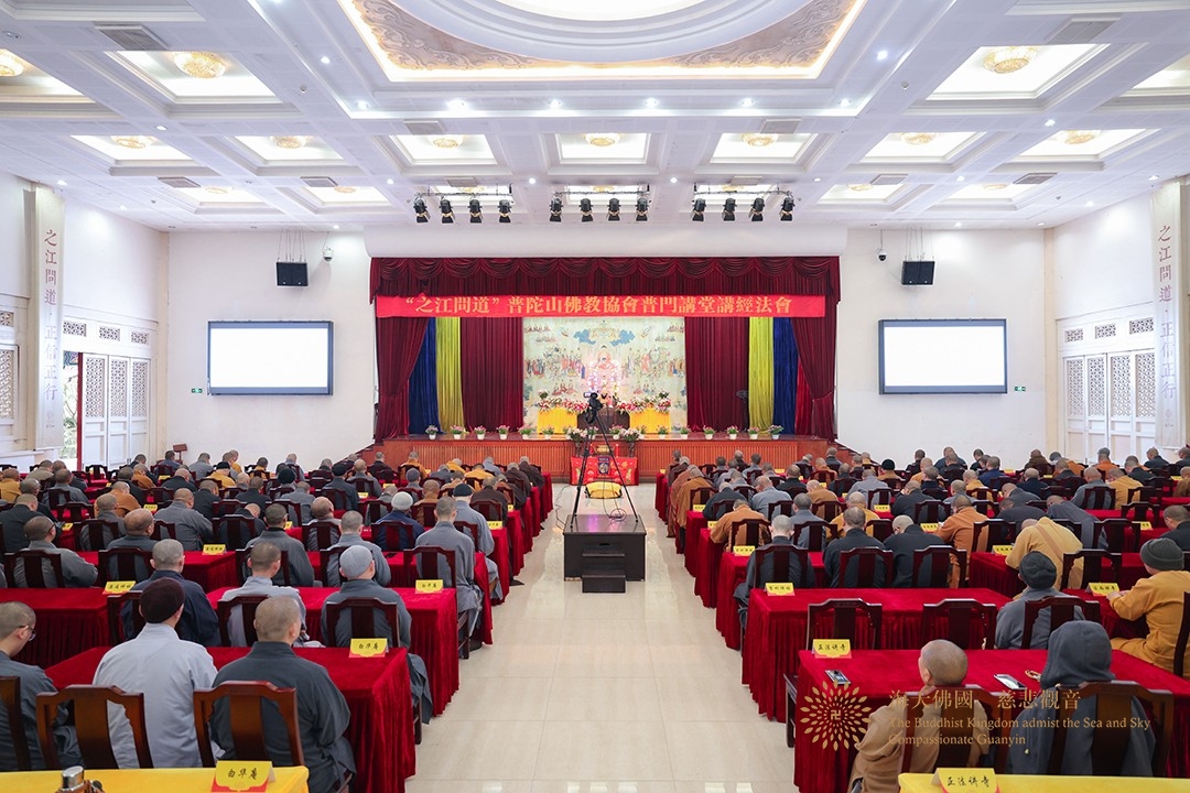 2026年3月22日,“之江问道”普陀山佛教协会普门讲堂讲经法会在普陀山宝陀讲寺举行。浙江省佛教协会副会长,嘉兴香海禅寺方丈贤宗法师讲授《迈向僧伽之路——戒为无上菩提本》。普陀山佛教协会会本部、全山各寺院僧众及随喜护法居士共300余人参加法会。