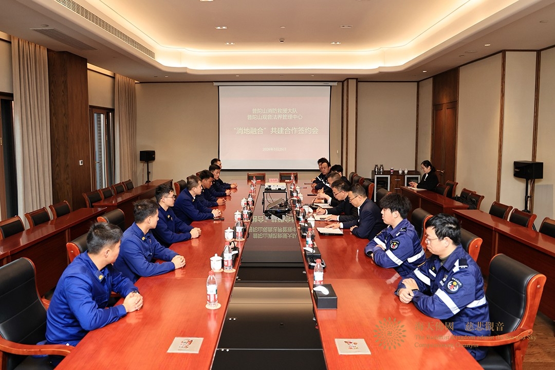 近日,普陀山观音法界管理中心与普陀山消防救援大队举行“消地融合”共建合作框架协议签约仪式。双方相关负责人共同出席,见证这一深化平安建设的重要时刻。